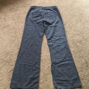 Express pants. Wide legs. 55% linen 45% Cotten. Color looks like a blue jean. Needs ironing. Size 2. I love these pants but I can’t fit in them anymore :( GUC.