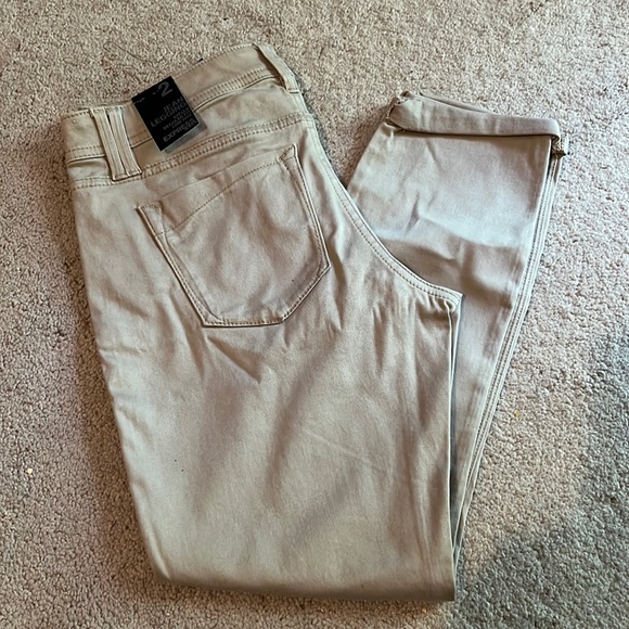 Khaki pants from express. Too small for me. Size 2, new with tags. Low rise, regular fit. Cuffed bottoms, ankle length.