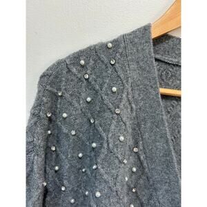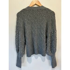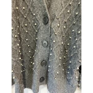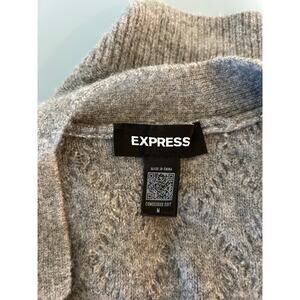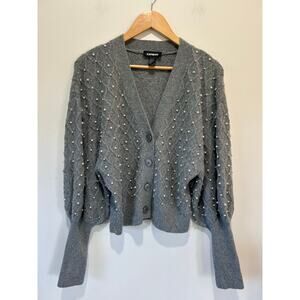 Express pearl cardigan size M grey v neck buttons balloon sleeve knit patterned