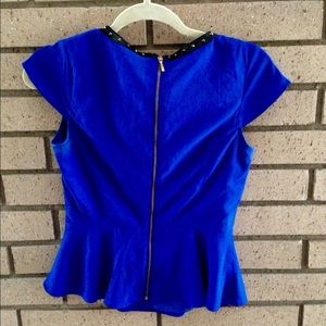Peplum top with studded neck line zipper down the back. Silky cool fabric