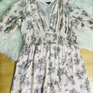 Express pink floral spring and summer party dress plus size. In good used condition. This beautiful floral dress does not have a size tag unfortunately, but I added measurements down below: