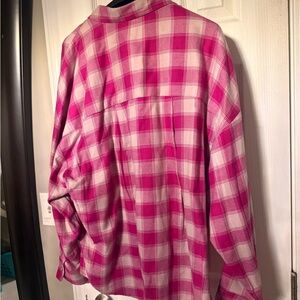 Casual button-down with a bold pink plaid pattern. Features a chest pocket and classic collar. Ideal for everyday wear.