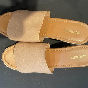Never worn, easy slip-on style sandals that gives you some height. These sandals have a Padded footbed, and open toe style .