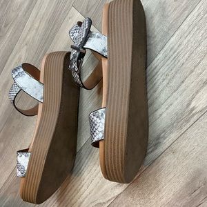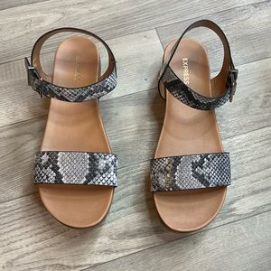 Used like new size 7 express platform sandal with snake skin straps. Excellent used condition.