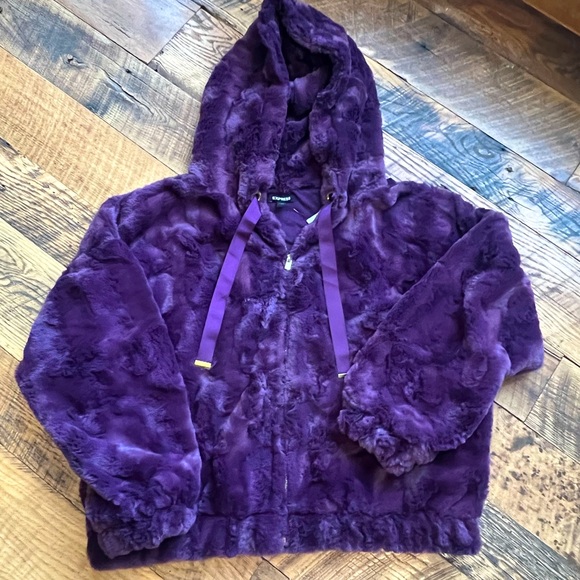 Beautiful purple plush, SUPER soft jacket. Gold zipper. Nice and warm.
