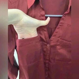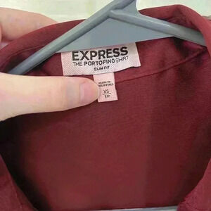 Express brand, long sleeve, red, shiny silk, long sleeve, Portofino shirt