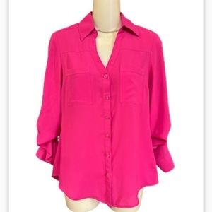XS Express portofino button down blouse in a beautiful hot pink with 3/4 or long sleeves. EUC
