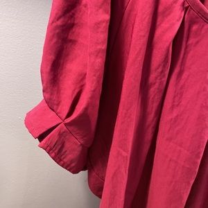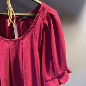 So cute, pleated neck and sleeves Express magenta, pullover blouse. Very classy, very comfortable, in great shape.