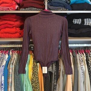 Express purple/metallic threads long sleeve turtleneck bodysuit size XS NWT