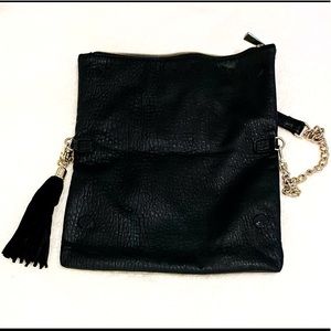Express purse. Gold chain, and black tassel. Top zipper. Folds down to magnetically close. Goes from small bag to medium if needed. Good preloved condition!