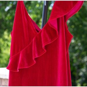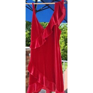 Express red ruffle sleeveless velvet dress party Holiday Christmas hoco, sz M