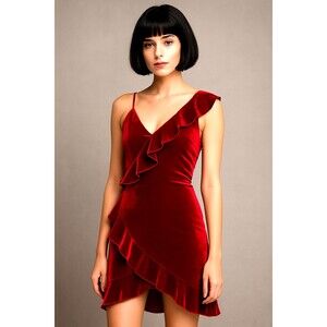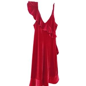 Express Red Velvet One-Shoulder Ruffle Dress - Size Medium
