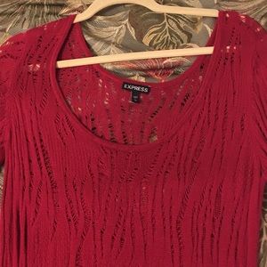 Express red sweater large. It will Stretch much wider and then will be shorter, I just stretch it long when it drys so that it won't be so short. must have tank under it.