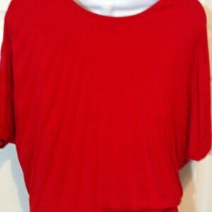 This is a really nice red top by Express made of 80% rayon, 17% nylon and spandex. Soft and comfy. Has ribbed design going longitude. Has a nice size ribbed bottom. Has shirt sleeve bat wing style. Excellent condition. Measurements are approximately lying flat pit to pit 20" length 21". Gorgeous. ๐ฅ๐๐ฅ๐