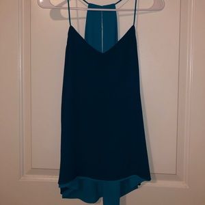 Express reversible Barcelona cami! I put it on a couple times and cut the tag out but never worn it out. It’s really comfortable and looks great under a blazer or by itself. Because it’s reversible you get 2 shirts in 1! One side is aqua and the other is a dark blue green.