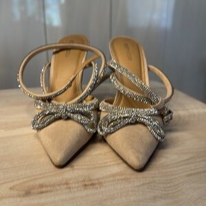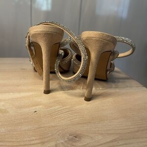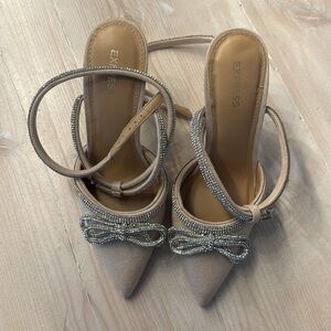 Express strappy rhinestone heels in tan/nude or black (see others listing). Wore once. Labeled 7; fit like 7.5.