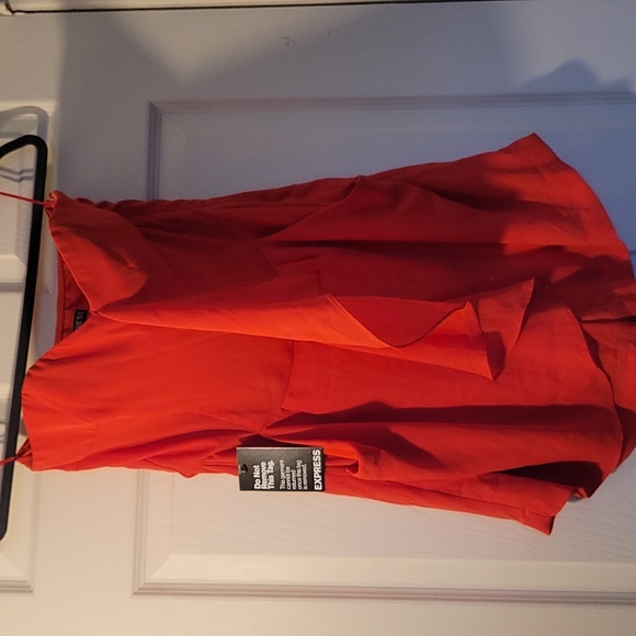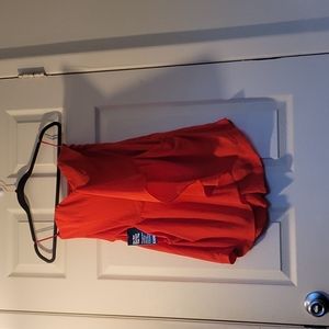 strapless romper with pockets!!! zipper and hook and eye closure. Super cute for day or night. The color is a orange red.