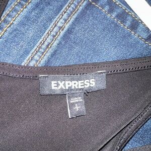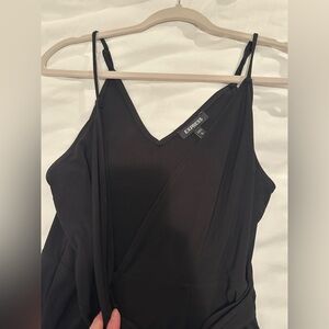 Express black tie front romper. Built in shorts with skirt that comes around the front and ties. V-neck top with adjustable straps. Size small.