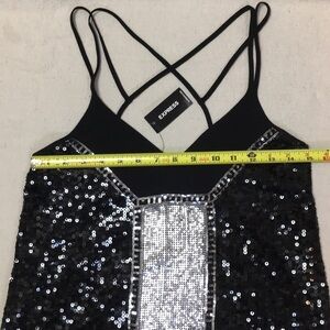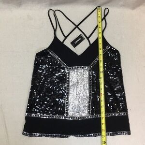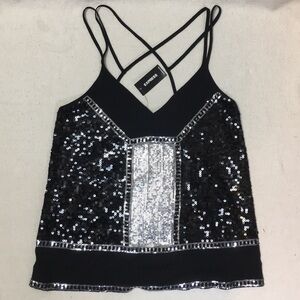 Strappy back tank with sequin embellished front - sheer panel at hem - front is lined - NWT - size XS