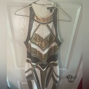 Express bodycon dress sz XS. Black, gold & white sequins. Excellent condition