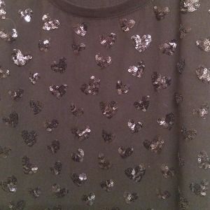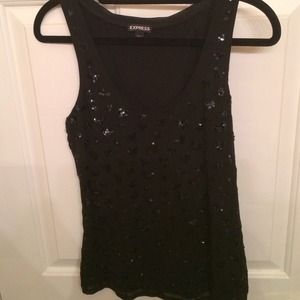 Express tank with sequins. Front is lined chiffon with sequin clusters in the shape of hearts.back is plain soft cottony feel. Looks super cute with a bright colored cardigan! Only worn once for Valentine's Day, excellent condition.