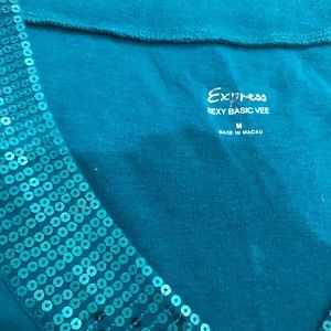 Express sequin-trim V-neck