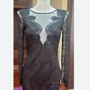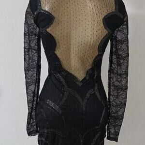 Express sexy black sequin sheer lace long sleeve dress sz2 backless dress NWOT