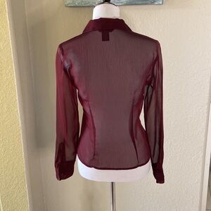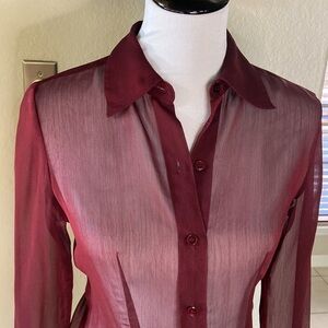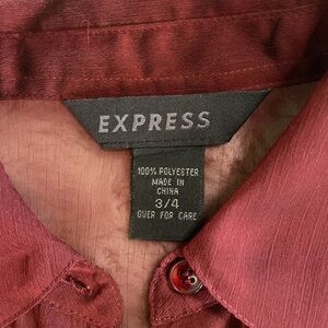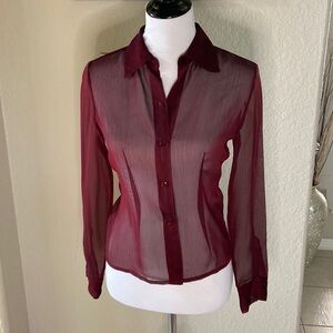 Burgundy sheer button down blouse from Express in size 3/4. Measures 16” armpit to armpit 21” in length. In excellent condition