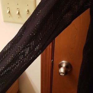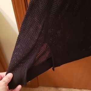 Express fishnet shirt long enough to be worn with leggings. Slit on one side. Should be worn with a tank top underneath since its fishnet.