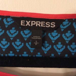 Black, blue, red and white shirt sleeve blouse. I have only tried it on and taken off the tags but then I didn't wear it.