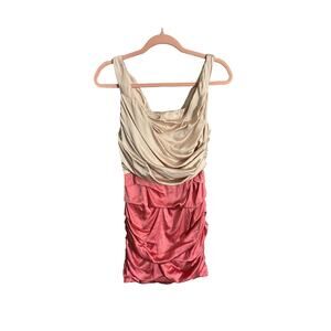 Express silk cream pink ruched tiered sleeveless dress zip up size 4