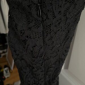 Unique dress from mass production—rare find. Size six lace dress, halter style with front zipper detail. Side zip closure. New condition without tags.