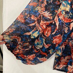 Express size XL Multi Color Artsy Floral Long Sleeve Popover Blouse Office