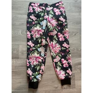 Express size medium women’s floral joggers in excellent condition. Waist measures 15 1/2” across. Inseam is 28” and rise is 10”.