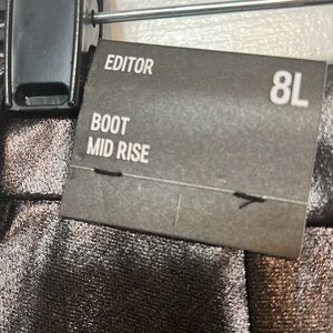 Shiny black with silver looking finish Express slacks. Boot cut, mid-rise. Inseam approx 35”. Beautiful dressy slacks. NWT.