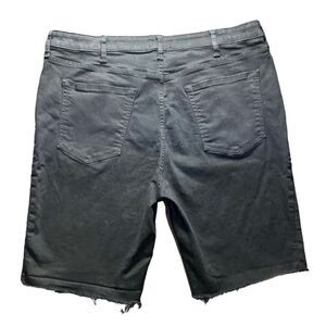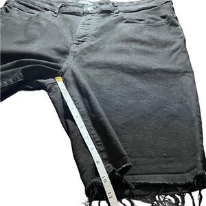 Cut off style, zip up button fly, 5 pocket, belt loops.