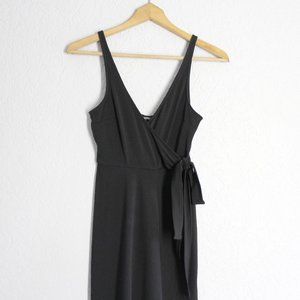 Express little black dress. Pull over, stretchy material, surplice bodice, V-Neck, side tie, hemline is longer on the back.