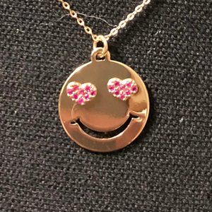 Express smiley face necklace, gold with jeweled heart eyes NWT