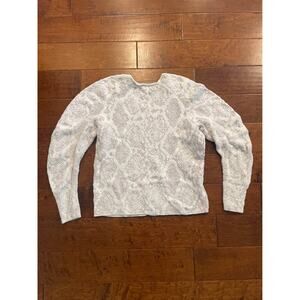 Oversized sleeves and overall fit. White and gray snake skin pattern. Can work for maternity since it is so oversized.
