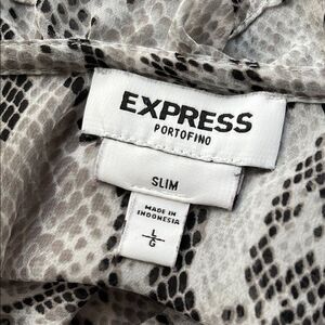 Express snake Gray and Black Relaxed Buttoned Blouse with Mandarin Collar Large