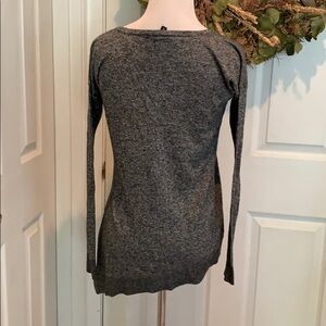 This is so cute and comfy! Very soft, ribbed hem and cuffs. One side is slit and liner than the other in the back. Fun design and very flattering fit. Measures approximately 18 armpit to armpit and 25 down the center of the back. New without tags.