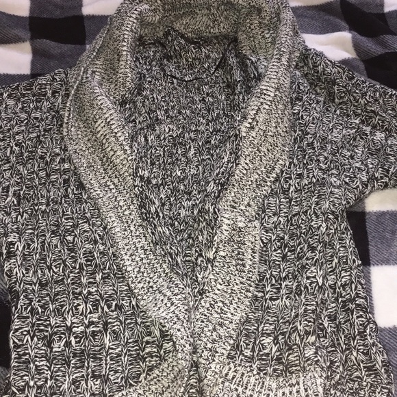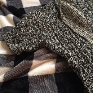 Short sleeve express sweater. Black, grey and white knitted sweater. Size medium