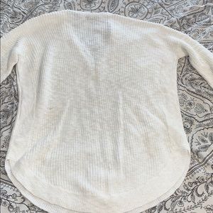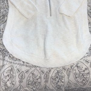Cream color. Super soft. Quarter length sleeves. Zip up detail on front. V neck. Size XS but fits like a small. No holes or stains. Never worn. Smoke free home.