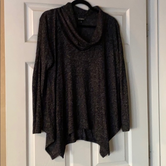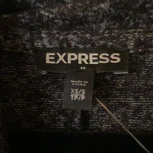 Express lightweight sweater. Blackish/gray heathered look. Really cute soft material. Size xs, but has an oversized fit. Not a straight across hem.
