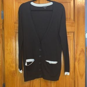 Size small black button up sweater with ivory at pockets and end of arms
