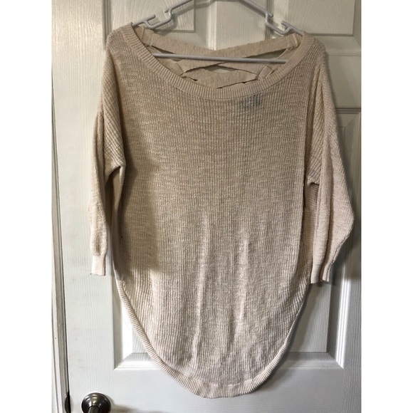 Oversized cream scoop sweater with crisscross back detail. Size XS from Express, fits like a medium.