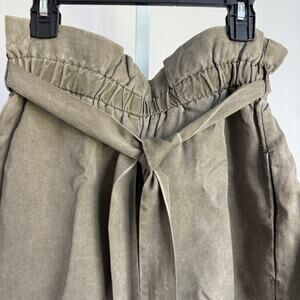 Express sz S Olive Green Linen Blend High Rise Belted Paperbag Shorts