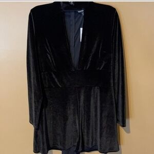 Express sz xs black velvet sexy low front V romper new with tags