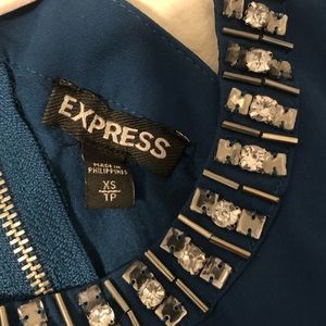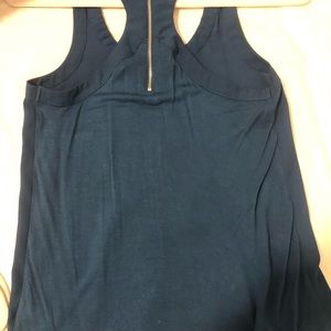 Teal tank, racer back with zip, jewels around neck line
