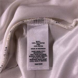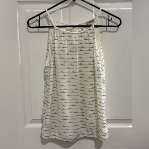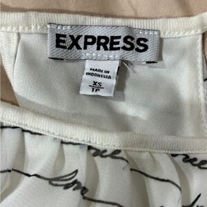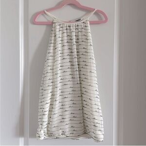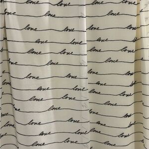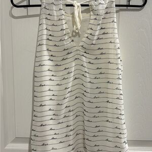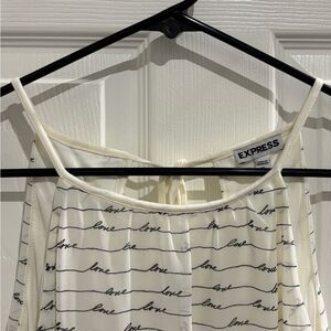 White express tank top with the words Love written all over in black. Straps are not adjustable. Back has a tie by the neck. Inside has white lining